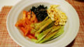 これは旦那さんが作ってくれたドライトマトとオリーブのパンが冷凍されていたのを、トーストしました。